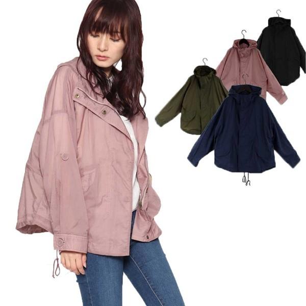 大人ドルマンショートモッズコート メール便不可 M アウター レディース 春 スプリングコート モッズコート カーキ ネイビー ピンク ブラック 春物 トップス 春服 ショート丈 ジャケット ライトアウター モッズジャケット フード マウンテンパーカーのおすすめ